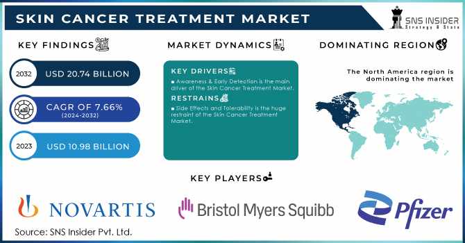 The Skin Cancer Treatment Market Size was valued at USD 10.98 Billion in 2023 and is expected to reach USD 20.74 Billion by 2032 and grow at a CAGR of 7.66% over the forecast period 2024-2032.